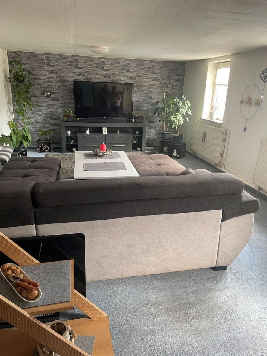 Die Wohnung im OG wird mit einer Gaszentralheizung aus dem Jahr 2013 beheizt. Diese Wohnung wird zzt. noch von dem Verkäufer bewohnt und kann beim Verkauf nach Absprache bezogen werden. Die obere Wohnung erreichen Sie über eine Außentreppe auf der Rückseite des Hauses. Über den großzügigen Flur betreten Sie links das Schlafzimmer, rechts erreichen Sie die schöne Wohnküche. Das Wohnzimmer mit angrenzendem Essbereich ist zur Straße ausgerichtet und hat Schallschutzfenster. Das Bad mit Dusche und Badewanne liegt direkt neben dem Schlafzimmer.
