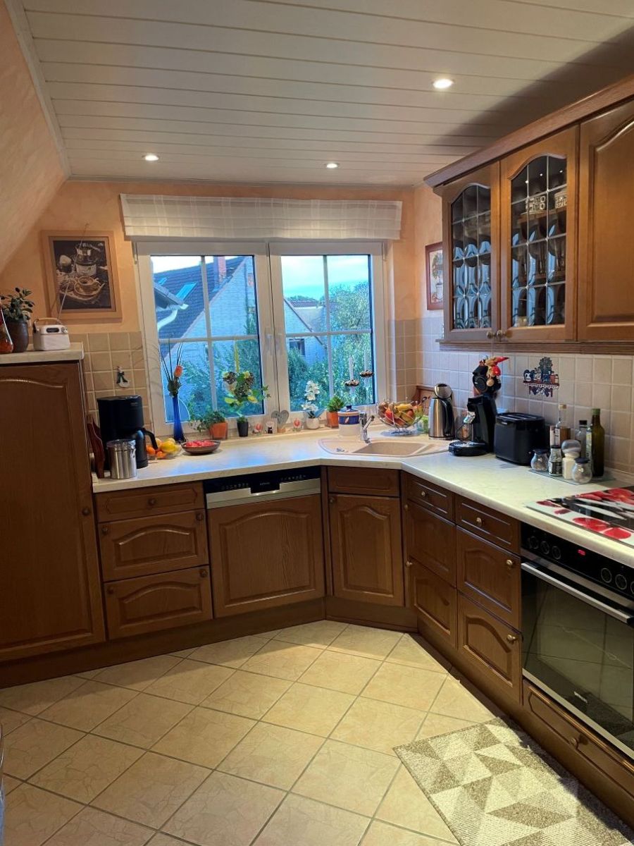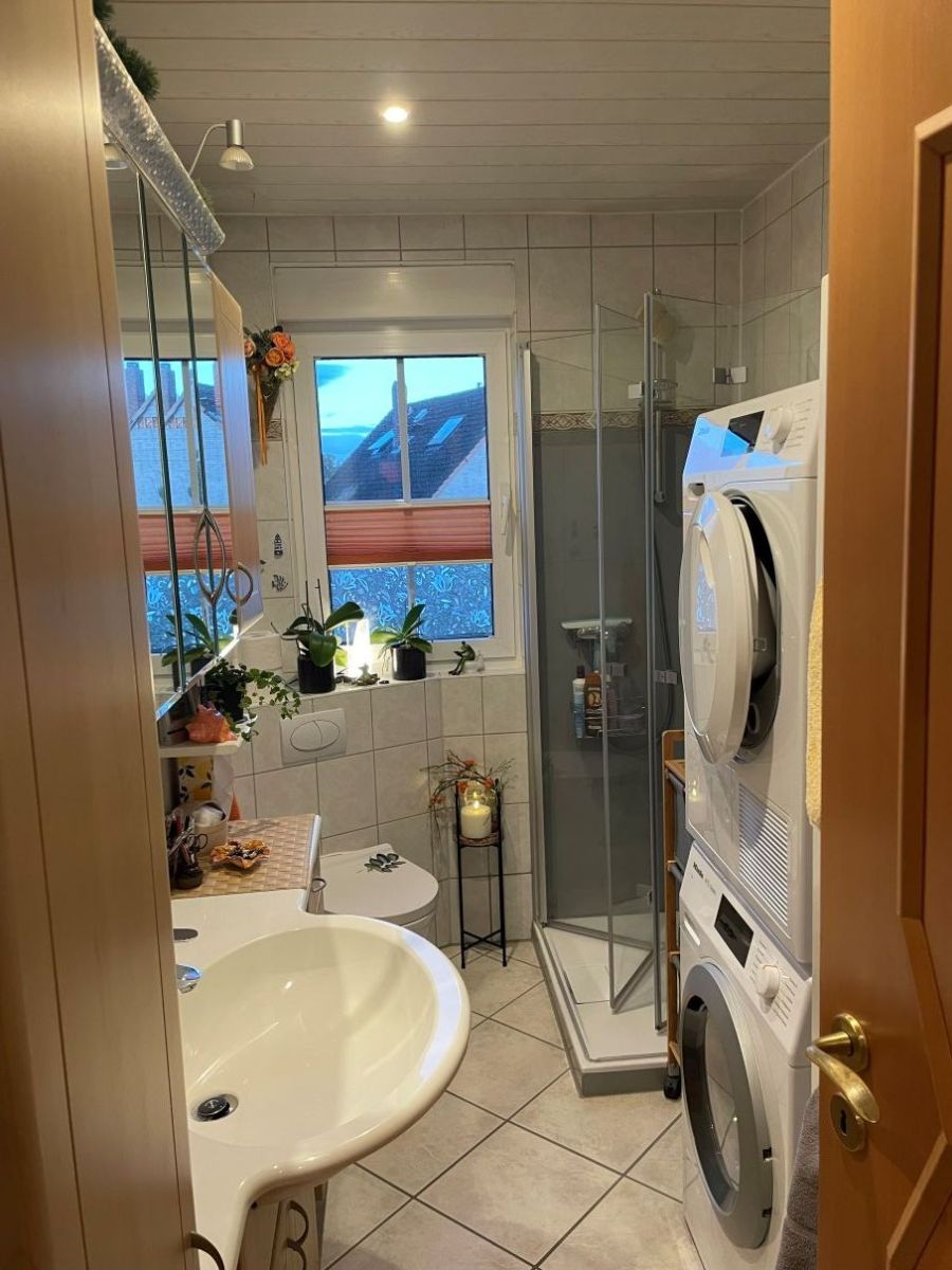 Die neue Heizung aus dem Jahr 2022 sorgt für effiziente Wärme. Die Fenster wurden bereits teilweise erneuert. Die Räume im Erdgeschoss haben zum Teil Fliesenboden, zum Teil Laminatböden. In der oberen Wohnung sind auch im Wohnzimmer Fliesen verlegt worden. Im Büro und im Schlafzimmer ist Laminat verwendet worden. Durch den Einbau von Erkern wurde der Wohnraum im Dachgeschoss weiter aufgewertet. Das Haus ist voll unterkellert; von der neu gefliesten Garage können Sie direkt ins Haus gehen. Auch ein abgeschlossener Carport mit elektrischem Rolltor gehört zum Haus. Ein Glasfaseranschluss ist vorhanden.