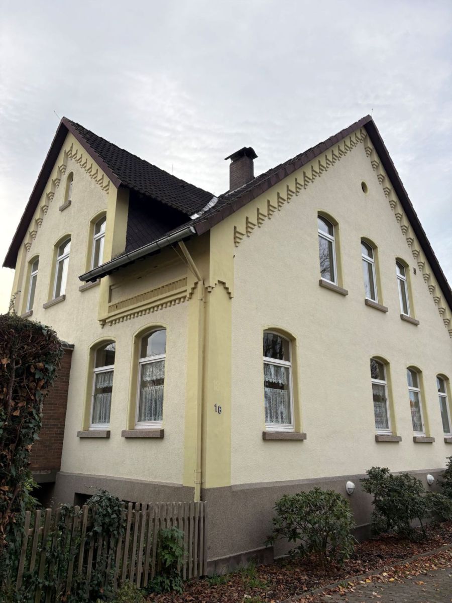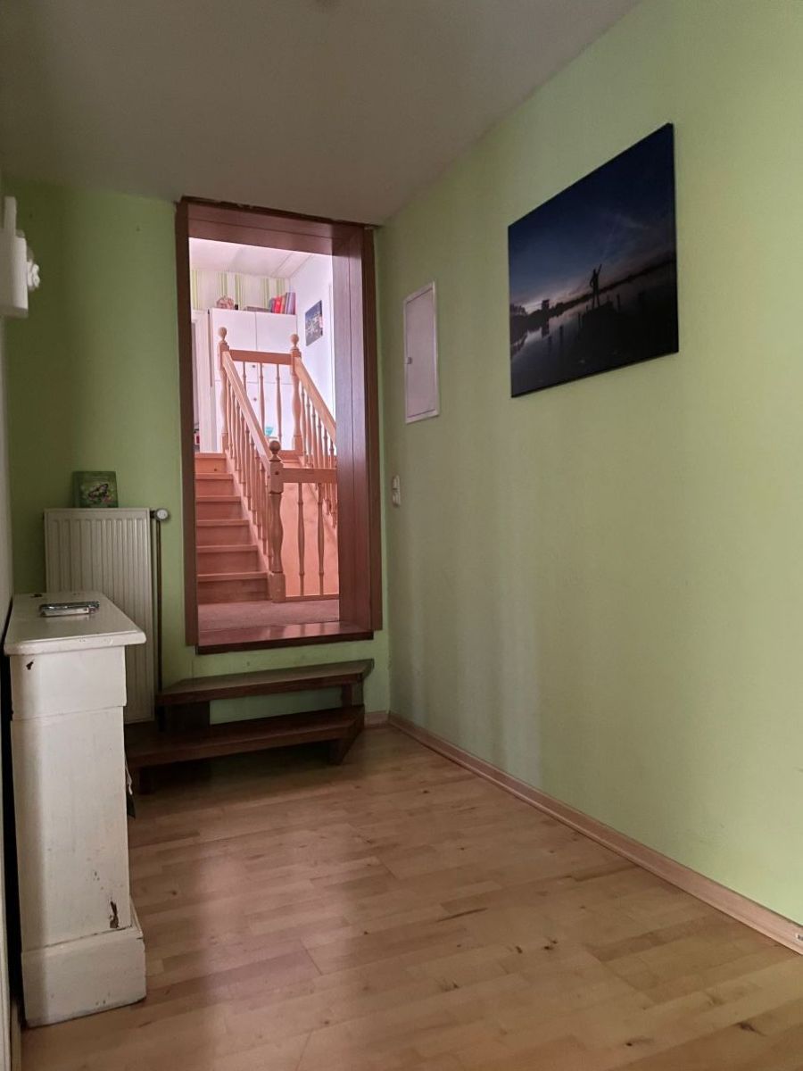 Das Haus, das ca. 1900 erbaut wurde, hat 2004 einen Anbau mit Balkon bekommen. Insgesamt hat das Anwesen seit dem zwei großzügige Wohnungen mit hellen Räumen und getrennten Eingängen, deren Eingangsbereiche viel Platz für Garderobe und andere Dinge bieten. Die obere Wohnung ist ca. 150 m2 groß, die Wohnung im Erdgeschoss hat ca. 100 m2. Das Haupthaus ist voll unterkellert. Durch das große Grundstück, die beiden Balkone im Obergeschoss und die separaten Eingänge haben die Bewohner und Bewohnerinnen viel Privatsphäre und Ruhe. Der gesamte Besitz lässt Ihnen eine Vielzahl von Nutzungsmöglichkeiten. Machen Sie den Garten zu Ihrer eigenen Ruheoase und nutzen Sie ihn zum Gärtnern, zum Spielen oder für Ihre Hobbys. Die obere Wohnung ist zzt. vermietet, die untere Wohnung muss zunächst renoviert werden. Mit Kreativität und Tatendrang können Sie hier Ihr Zuhause mit individuellen Details und toller Ausstrahlung schaffen. Der helle Wohnflur mit den alten Fliesen und die angrenzenden Räume können nach Ihren persönlichen Bedürfnissen gestaltet und aufgeteilt werden.
