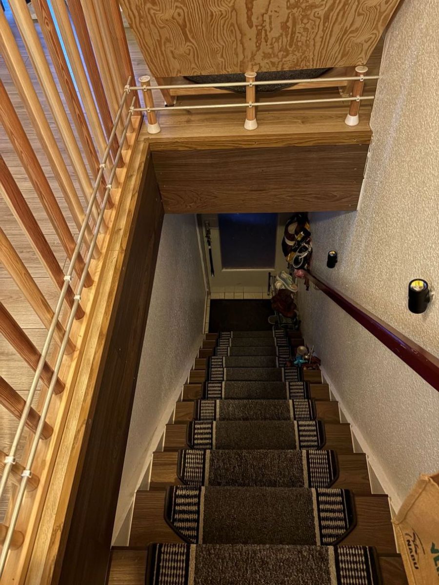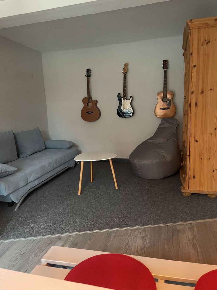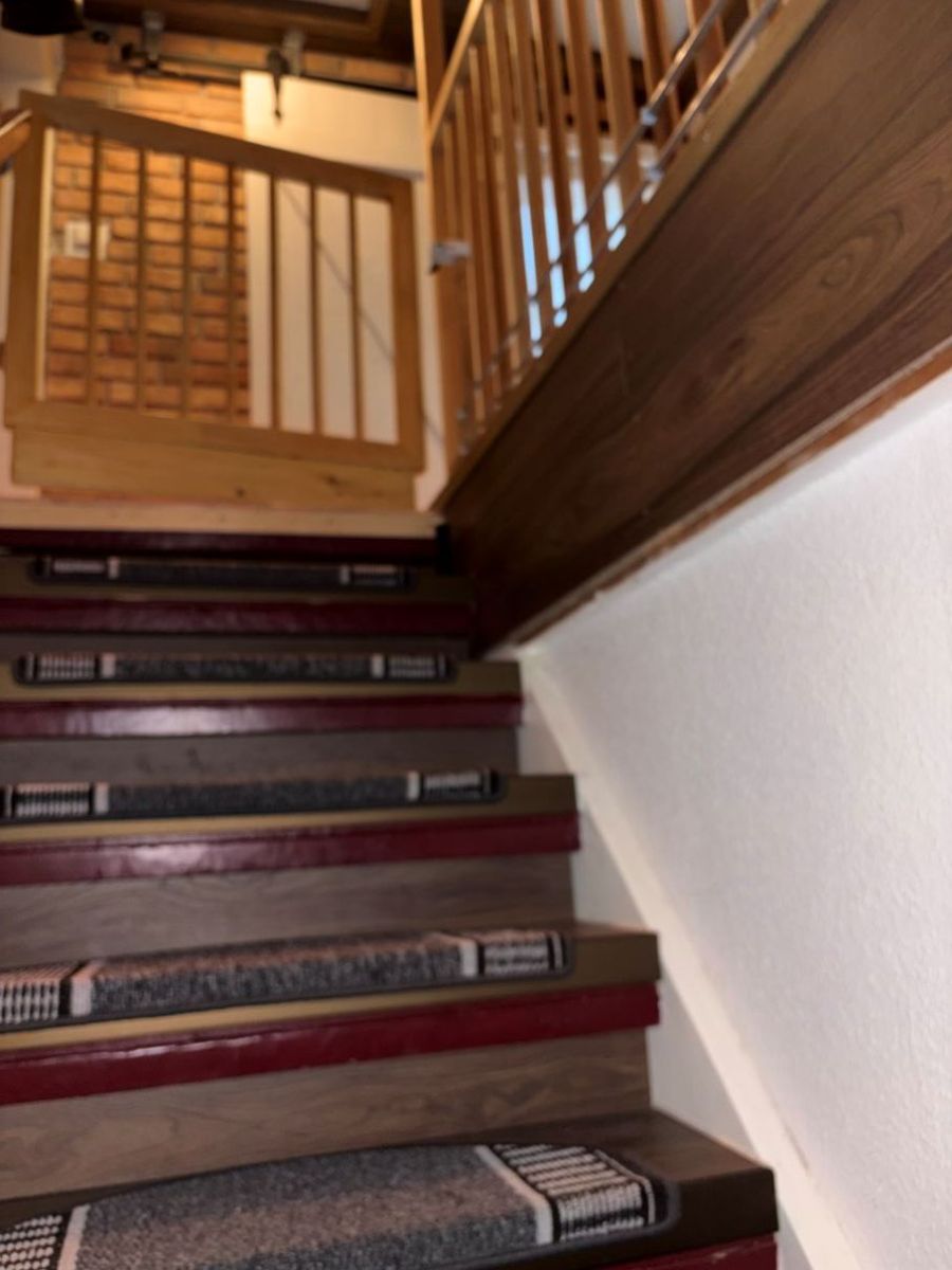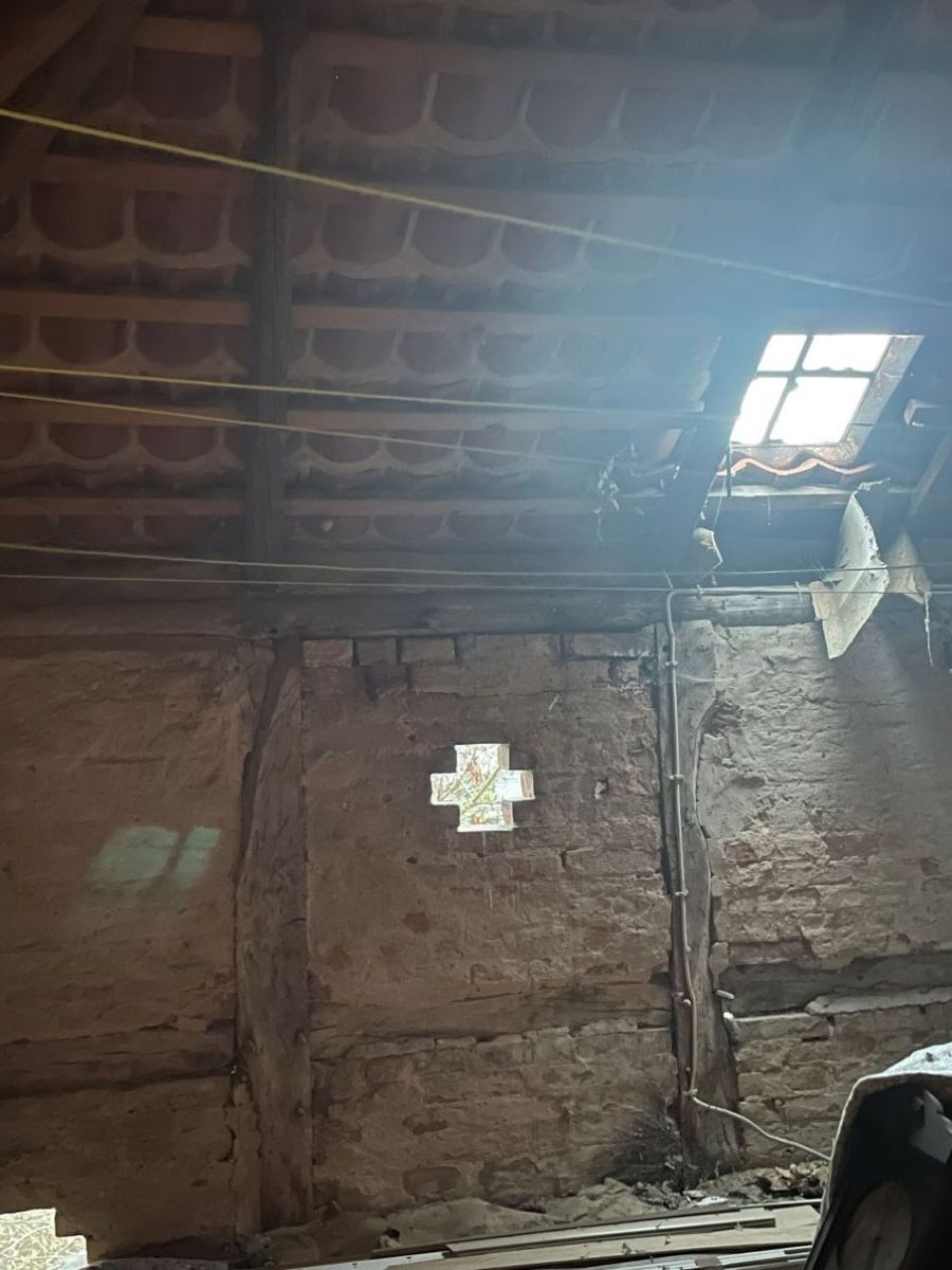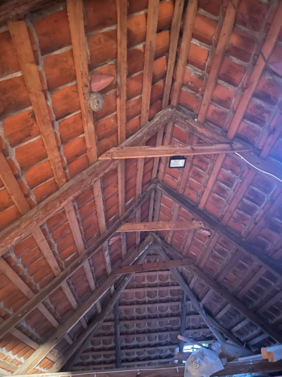 Vom Flur aus erreichen Sie das moderne Duschbad. Ein besonderes Detail: die wunderschön gestaltete Schiebetür, die sich harmonisch in den Charakter des Fachwerkhauses einfügt. Zur oberen Wohnung gehören außerdem drei Zimmer, die Sie Ihren persönlichen Bedürfnissen entsprechend einrichten und bewohnen können. Zurzeit bestehen sie aus einem Schlafzimmer, einem Ankleidezimmer und einem Gästezimmer. Vom Flur aus erreichen Sie ebenfalls den Freisitz und daran anschließend die überdachte Loggia über dem Carport. Von der oberen Wohnung können Sie über eine Treppe ins Dachgeschoss gelangen. Hier befindet sich die 2020 eingebaute Heizung und ein Raum, der zurzeit zum Heimwerken genutzt wird. Das Dachgeschoss bietet Ihnen eine große Ausbaureserve.